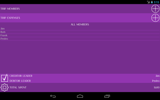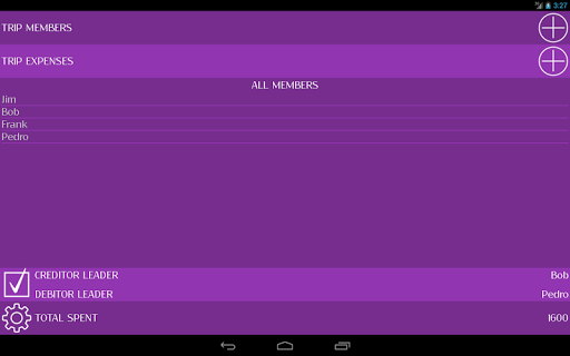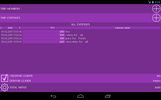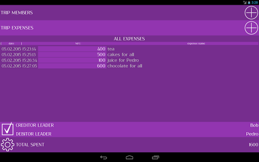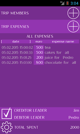 The app helps keep track of costs groups of travelers. Optimal implementation places the participants and their overall spending.