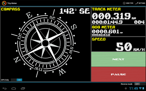 Dopełnieniem funkcji aplikacji jest kompas wyświetlający kierunek jazdy zarówno w postaci nazw kierunków jak i stopni.
