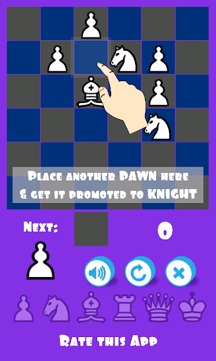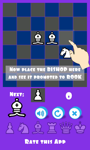 So, the objective of the game is to upgrade as many chess pieces on the board to KING as possible; There can be multiple KING on the board. And the game will end when all cell on the board are filled. The game comes with unlimited moves as well as undo feature.