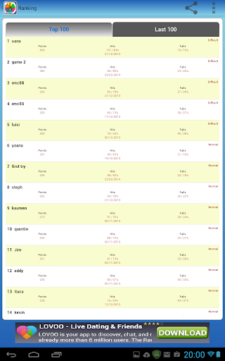 -Ranking: Top 100, where you can compete with your friend @ s Online!! You also have a rank of the last 100 games played!!
