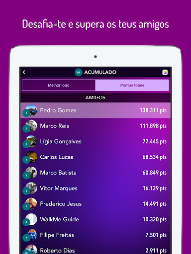 - Partilha nas redes sociais as tuas conquistas e mostra aos teus amigos que és o melhor!