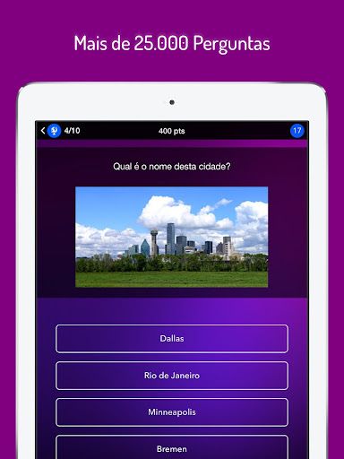 - Um quiz viciante e divertido com perguntas atualizadas para jogar em qualquer altura.