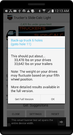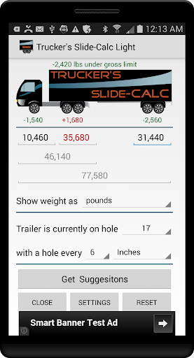 Enter your axle weights (platform scale or individual axles) and the app calculates how much each axle is over or under, including gross. Then click "Get Suggestion" and it tells you where to slide. It's that easy.
