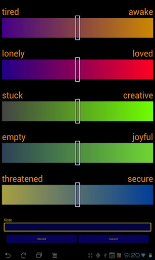 “跟踪我的心情是一個很大的幫助!我開始注意到倍的一天,我累了或運行的情況下,我能看到如何改變,我開始認識到太陽的運動,甚至在我們沒有窗戶的辦公室!我還創建了我的健康,我覺得自己的選擇來跟踪。我生病了很多,所以我使用它來保持自己的眼睛。如果我發現我已經感覺有些不舒服,更多的時候,我可以扼殺在萌芽狀態!情緒跟踪器是一個很好的工具,我用...它讓我跟踪我的感受,並讓我估計,如果我有一個“壞”,或不。我看到它附近的任何地方前,先要壞,並可以採取措施來放鬆身心。