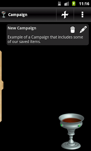 Group the saved items from the RPG, RPG+, and Custom Dice Sets together to define your own Campaign. The Campaign gives you ready access to your character or game specific equipment, abilities, spells, etc.