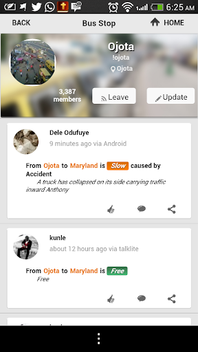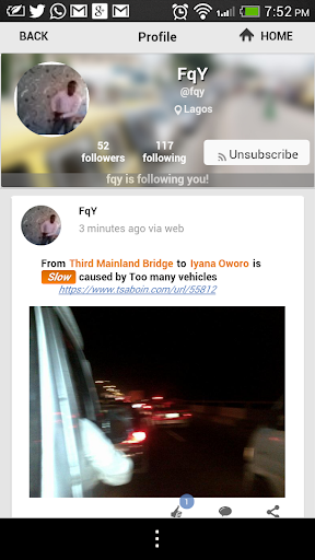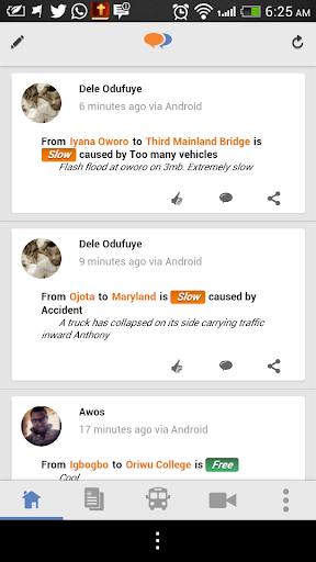 Lagos road users use Tsaboin TrafficTalk to beat the traffic. The app gives you traffic updates with LIVE Lagos traffic camera views. You also get alerts and security notices via push notifications. You can also share your own traffic experience with pictures. Ask for directions via our platform and find other users just like you. Join now at www.tsaboin.com
