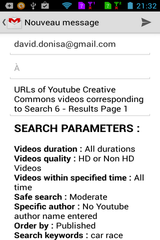 Thanks to install Gmail to be able to export Urls of YouTube Creative Commons videos .
