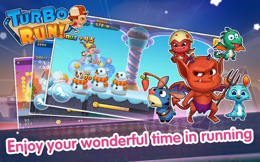 Turbo kids are running. They jump and slide, collect coins and items. No one could stop them!