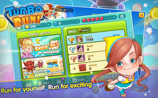 No hesitate! You'll have lots of fun in Turbo Run world, with your friends ,or players from all over the world!