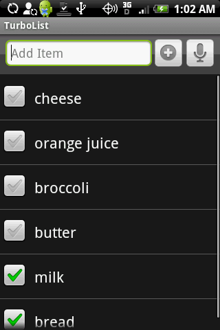 Use voice recognition to dictate new lists. Send lists to other TurboList users with a text message!