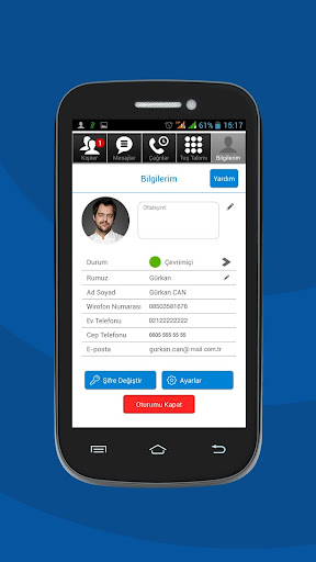 Durum Bilgisi: Wirofon kullanıcıları arkadaş listesindeki kişilerin uygun, meşgul veya uzakta olduğunu durum bildirimi işaretlerine bakarak anlayabilirler.