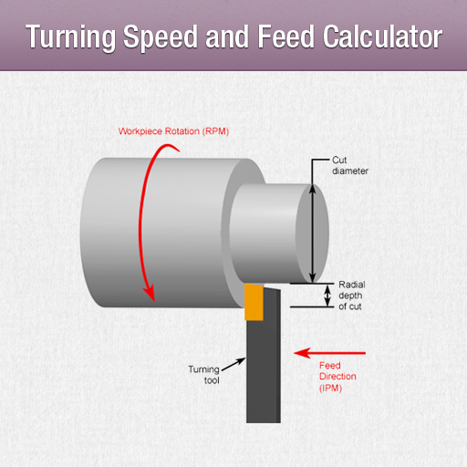 Turning Speed and Feed Calculator is a quick tool to calculate determine the spindle speed (RPM) and feed rate (IPM) for a turning operation, as well as the cut time for a given cut length.