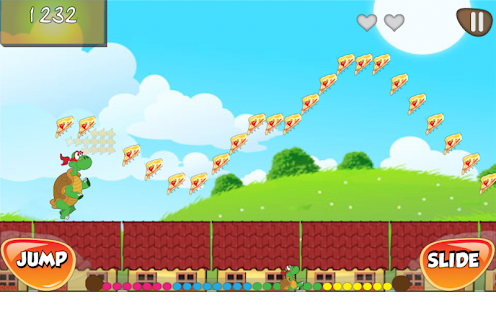 Sharpen your reflexes to avoid knocking against something! Turtle Ninja Pizza Fan world will keep your senses on guard every step of the way. With great HD graphics and blow minding challenging levels for you to success. Run as fast as you can, avoid different obstacles and collect everything you see on your way to the mysterious land. Be aware of surprising things which will appear during your journey! Collect them in order to turn into a fever running state, cooler outfits, bonus time and double scores!