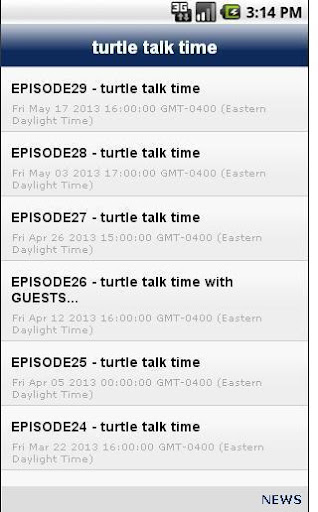 The official Turtle Talk Time (Popular iTunes podcast) Android app. is here! Now you can listen to TTT on the go, without downloading each episode!! Just click the play button, to instantly listen to TTT anywhere. It will auto-update whenever there is a new episode.