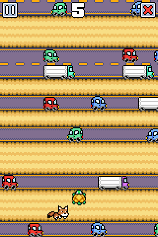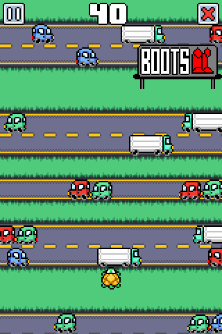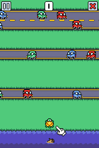 Turttler, the titular turtle, is on a mission to walk really, really far. Just tap the screen to make him move forward by one row. Hold down on the screen to keep moving, or let go to stop. And don't get hit by the vehicles.