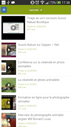 - Vidéos : un onglet vous permettra de regarder les photos prises par l'auteur de l'application. Elles vous serviront d'exemple et peuvent être une source d'inspiration.