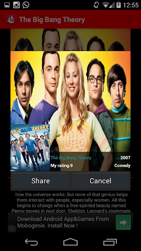 Share photos the movie or TV show you are now watching or love instantly with friends and followers on Instagram, Facebook, Twitter or Email with you own personal rating.