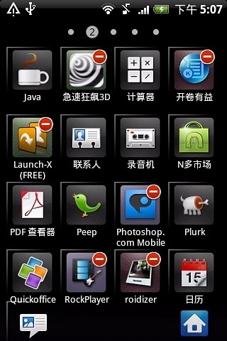 三星界面??????v2.1-update1取自三星手机的Launcher,颇有几分iPhone的味道,如果你正在使用ADW或者其它Launcher,不妨换换口味,让自己清爽一下。