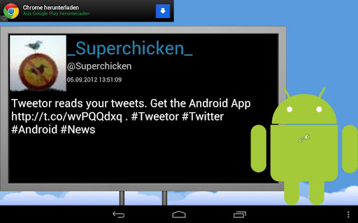 This App reads your tweets. But not only your timeline. You can listen to tweets of users, tweets with chosen words and tweets of your current location.