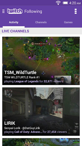 Twitch安卓版讓您可以隨選最想看的遊戲實況! 不論是英雄聯盟,爐石戰記,Minecraft,還是CS,這裡應有盡有!