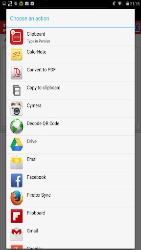 a.) Type the text and after you get the full text in Persian, press Share button. Then press the Clipboard
