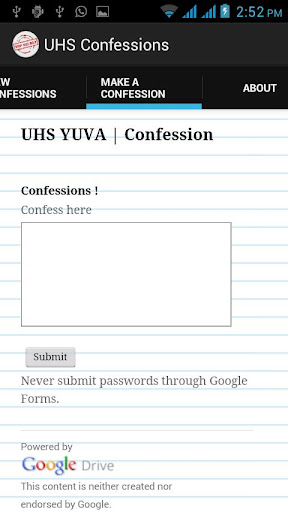 This application lets you to instantly View USH Confessions, Like them, Comment, or even Post one!