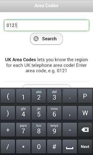 This app sports a fully comprehensive database of UK area codes, covering in excess of 600 different areas! Both 01 and 02 numbers included!