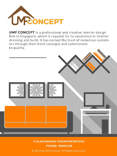 UMP concept is a professional and creative interior design firm in Singapore, which is reputed for its excellence in interior dressing and build. It has earned the trust of numerous customers through their fresh concepts and commitment to quality. UMP concept has the experience and expertise for each client's varying needs. The UMP concept team comprises of highly qualified and experienced designers and project managers who are reliable and committed to providing you with the best possible renovation experience and successful project completion.