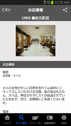 このアプリは、UNIXの公式アプリです。お店情報を地図上からチェックできるほか、UNIXのお得な情報や施設のご紹介、サロンの予約、会員証の表示などができます。