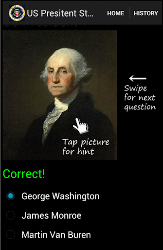 -Picture questions to memorize US president's face and short descriptions of the presidents.