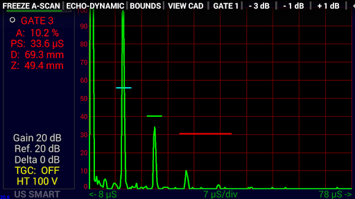 The transmitter can generate pulses with a voltage level and a width programmed by the user. A low noise preamplifier combined to a VGA gives a gain range between 0 and 80 dB, a DAC curve is also available. A 12 bits analog digital converter with a sampling frequency of 80 MHz is used to digitize ultrasound signals.