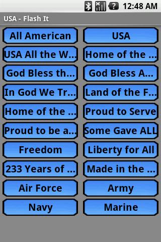 USA – Flash It allows you to display 1 of 20 (MODIFIABLE) US Pride Statements IN BIG TEXT with a single touch!