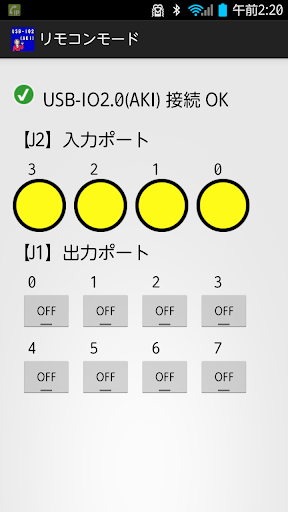 USB-IO2.0(AKI)に付属のWindows デスクトップ版の制御ソフトを、Androidアプリで再現したアプリです。