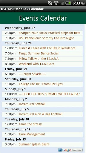 Created specifically for the University of South Florida Marshall Student Center (USF MSC). Please email the developers feedback on what you like, don't like and any suggestions for future releases.