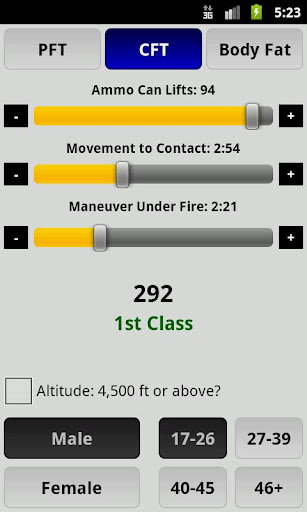 Marine Corps PFT & CFT & Body Fat Calculator: this application calculates your USMC PFT & CFT Scores and USMC maximum weight and body fat using the most recent charts.