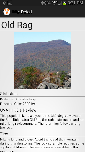 Explore the great outdoors around Charlottesville with UVA Hike, an app developed by students from UVA. How early do you need to leave UVA to catch a Humpback sunrise? Want to find that swimming hole that isn't Blue Hole? Get tips from UVA students who have logged hundreds of miles of trails around Charlottesville! Includes photographs of many of the beautiful natural areas around UVA.