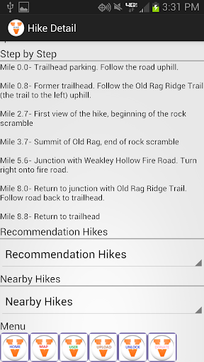 3. Map button on the bottom of a hike detail page will show a map of the hike (and your current location if you have signal).