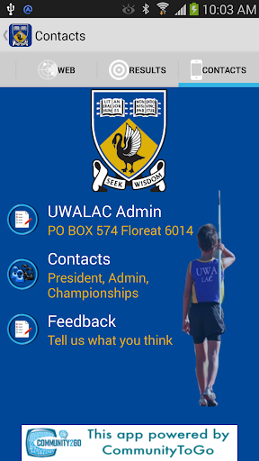 This app is for the community of the UWA Little Athletics Club. It allows easy access to often sought information such as competition schedules, results and the club calendar. The club can keep its members up to date via push notifications and members can keep informed by links to the the clubs Facebook page, the website and see themselves in action in the gallery