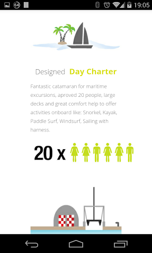 Con él podremos navegar hacia cálidas y relajadas calas, escogiendo un lugar de fondeo único, gracias al reducido calado. Su gran amplitud y espacio en cubierta nos proporcionará mucha comodidad en nuestras travesías y excursiones.