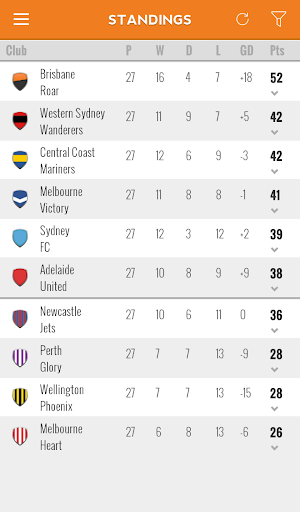 - Live scores and commentary options on game day, plus full goal, booking and appearance data for every A-League fixture ever played.