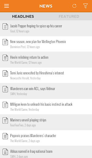 - Access to 'up to the minute' news, Twitter, breaking news and opinion pieces about the A-League.