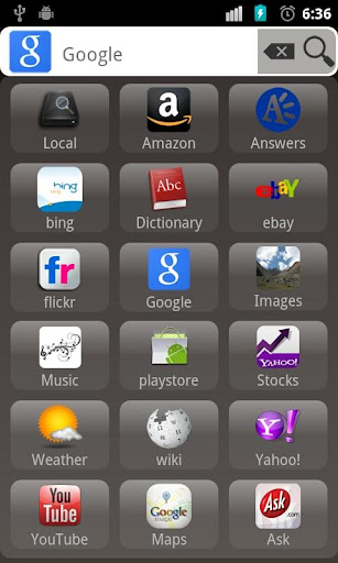 You can search google, bing or product search either from amazon or ebay, YouTube and images search. Click on the left icon to select a source to search from.