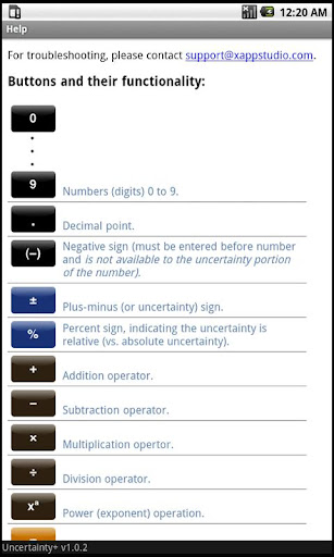 - Basic arithmetic with uncertainty (plus or minus): Addition, subtraction, multiplication, division, power (exponent).