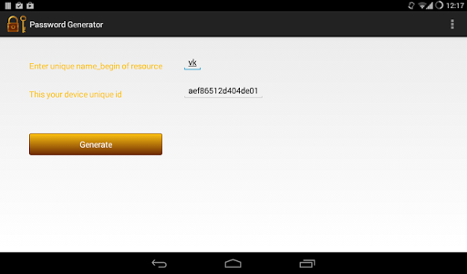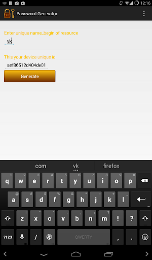 Программа генерирует уникальный пароль для определенного ресурса исходя из id устройства. Плюсы данного приложения в том что вы сможете в любой момент восстановить свой пароль зная название сайта для которого он предназначался.