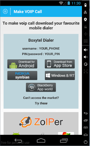 To make VoIP call, please download and use our BoxyTel mobile Dialer.