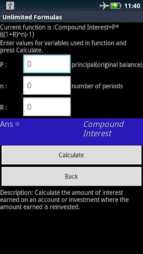 Calculator application with more than 350 formulas in-built from various categories like Physics, Chemistry, Mathematics, Conversion, Finance, Electrical, BMI and Area Volume. Facility to edit formulas to suite your requirements. (For free trial download "Myriad Functions")