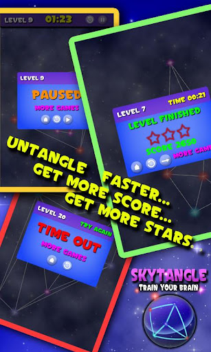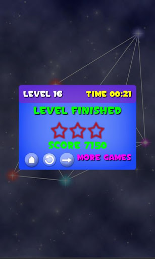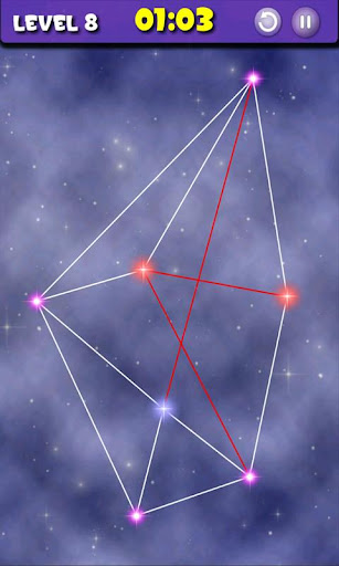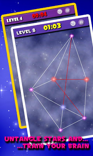 Любите интересные головоломки и ребусы? Значит это игра для вас :). Проверьте свои умственные способности, тренеруйте свой мозг. Цель игры распутать сеть перетаскивая звезды таким образом чтобы ни одна линия не пересекалась с другой. С каждым уровнем становится сложнее и интереснее, на каждый уровень есть ограничение времени. Устанавливайте рекорды, делитись ими с нами! Эта игра погрузит в вас с красивейшую и спокойную космическую атмосферу сопровождая вас приятной музыкой.