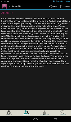 Tauheed ko phailane ki hamrai koshih mein humlog is Internet Radio ko aapki nazar karte hain. Iske zariya se aap duniya ke koi bhi kone me baithkar quran aur sahih Hadith par mushtamil Bayaanaaat sun sakte hain bas 3G yaa Wifii connection ki zaroorat hain.