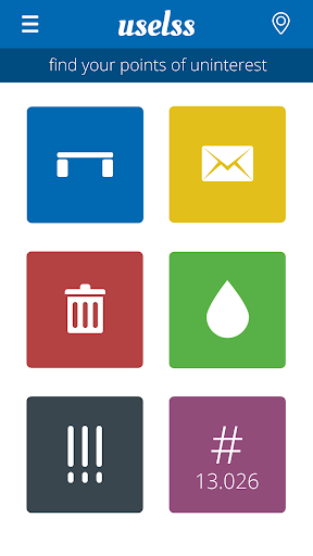 The Uselss App let’s you tag and find the following points of uninterest (POU) all over the world: Parkbenches, Mailboxes, Trashcans, Toilets and Cigarette Machines.