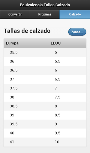 Tabla de conversión de tallas de calzado. Para saber qué talla debes pedir cuando vayas de viaje.